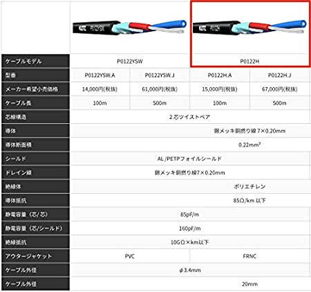 ●絶縁体:ポリエチレン 導体抵抗:< 40Ω/km