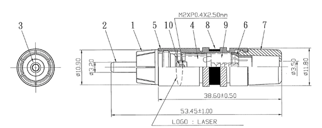 ONKODO AP3.5-02MBCG リン青銅製 金メッキ 大口径9mm受入 ステレオミニプラグ