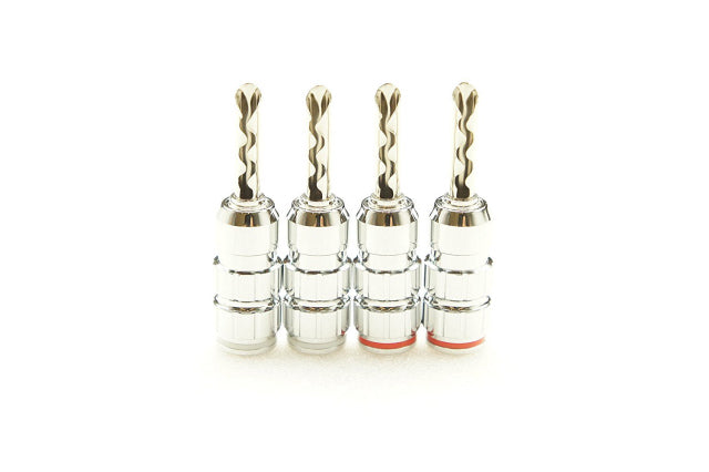 音光堂のロジウムメッキバナナプラグです。ロジウムメッキ製品としてはお求めやすい価格ながら、しっかりとした作りでご満足いただける品質です。コンタクトピンには燐青銅を使用し、高い導電性を実現したオーディオグレードモデルです。