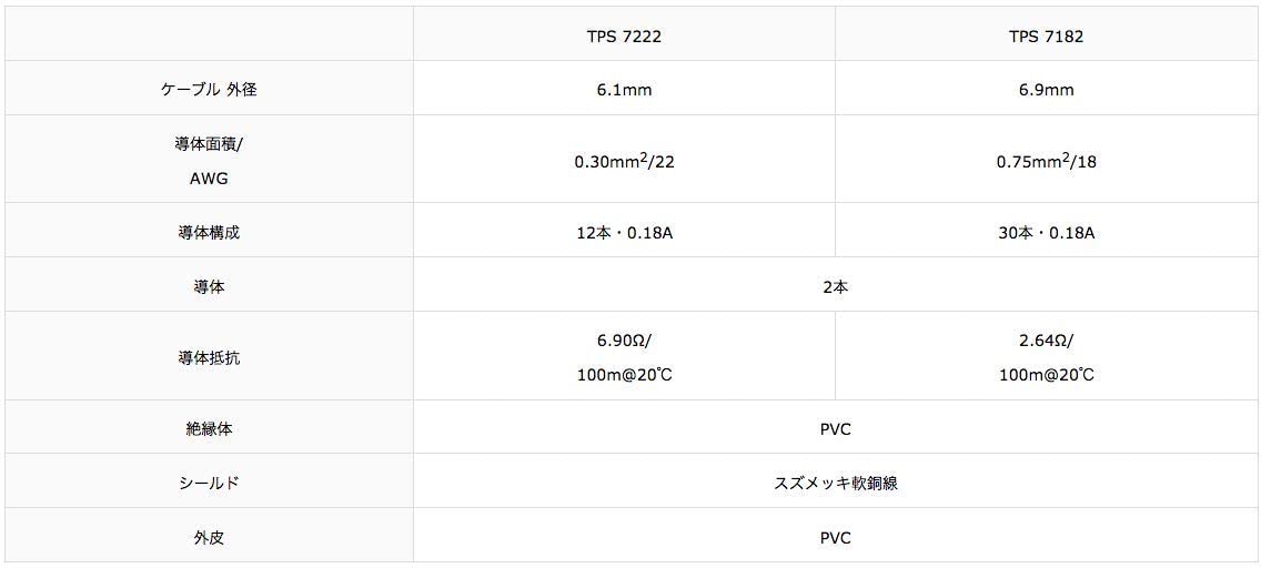 ●Cable: TACHII Tatsuta Tachii Electric Wire TPS7182